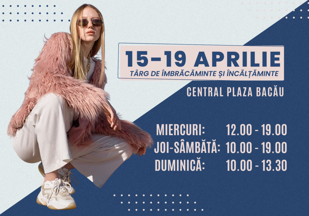 Targ imbracaminte si incaltaminte 18 – 22 iunie Data evenimentului: 18 – 22 iunie 2025 Locatia desfasurarii evenimentului: Cladirea Central Plaza Bacau, sala “Targuri si Expozitii” Distribuie acest eveniment: Soare, haine lejere și aer de vacanță… Exact așa începe 𝗽𝗿𝗶𝗺𝗮 𝗲𝗱𝗶𝘁̦𝗶𝗲 𝗱𝗶𝗻 𝗮𝗰𝗲𝗮𝘀𝘁𝗮̆ 𝘃𝗮𝗿𝗮̆ 𝗮 𝘁𝗮̂𝗿𝗴𝘂𝗹𝘂𝗶 𝗱𝗲 𝗶̂𝗺𝗯𝗿𝗮̆𝗰𝗮̆𝗺𝗶𝗻𝘁𝗲 𝘀̦𝗶 𝗶̂𝗻𝗰𝗮̆𝗹𝘁̦𝗮̆𝗺𝗶𝗻𝘁𝗲! Între 𝟭𝟴 𝘀̦𝗶 𝟮𝟮 𝗶𝘂𝗻𝗶𝗲, […]